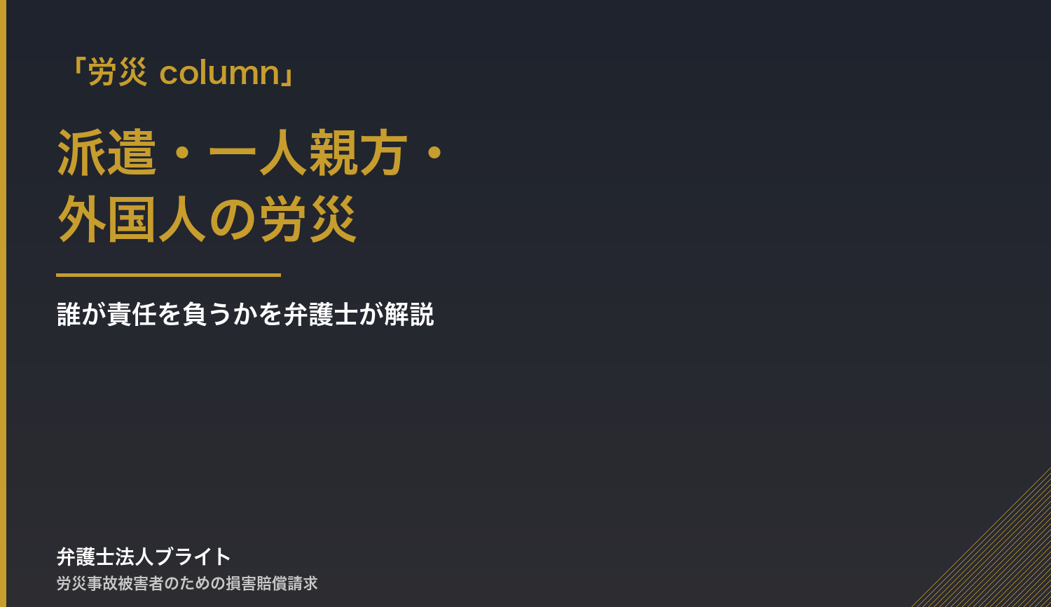 「派遣労働者の労災は、派遣先と派遣元のどちらに、どのような責任があるのかを整理することが第一歩です。両者がお互いに責任を押し付け合う構図はよくありますが、双方を相手取って整理することで、結果的に依頼者の救済が最大化されます。」(担当:有本弁護士)